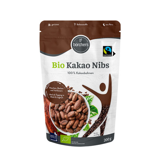 Unsere borchers Bio Kakaonibs werden aus peruanischem Rohkakao ausgewählter Plantagen gewonnen. Die erlesenen Kakaobohnen werden dafür in kleine Stücke gebrochen, jedoch nicht geröstet, sondern nur fermentiert und schonend getrocknet. Während dieser Phase entwickeln die Kakao Nibs Ihren wunderbaren Geschmack, der lecker herb, mit einer feinen Schoko-Note überzeugt. Die Bio Kakao Nibs bringen den puren Genuss auf Ihren Tisch.