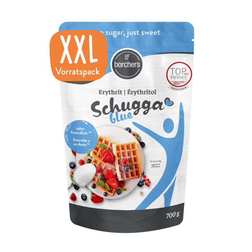 Unser Erythrit Schugga blue ist von Natur aus vegan sowie natürlich zuckerfrei. Es ist feinkörnig, gut löslich und kann sehr vielseitig wie Zucker verwendet werden, auch beim Backen & Kochen.