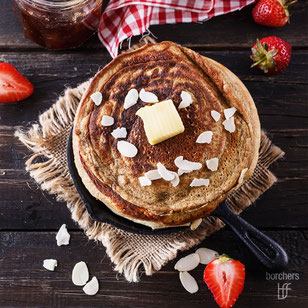 Bei mittlerer Hitze sollte ein Crêpe ca. 6 Minuten backen, dabei mehrmals wenden.